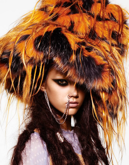Trenzas salvajes y maquillaje felino se complementan con accesorios como joyas y gafas funky. Una coctelera muy explosiva que me ha fascinado.